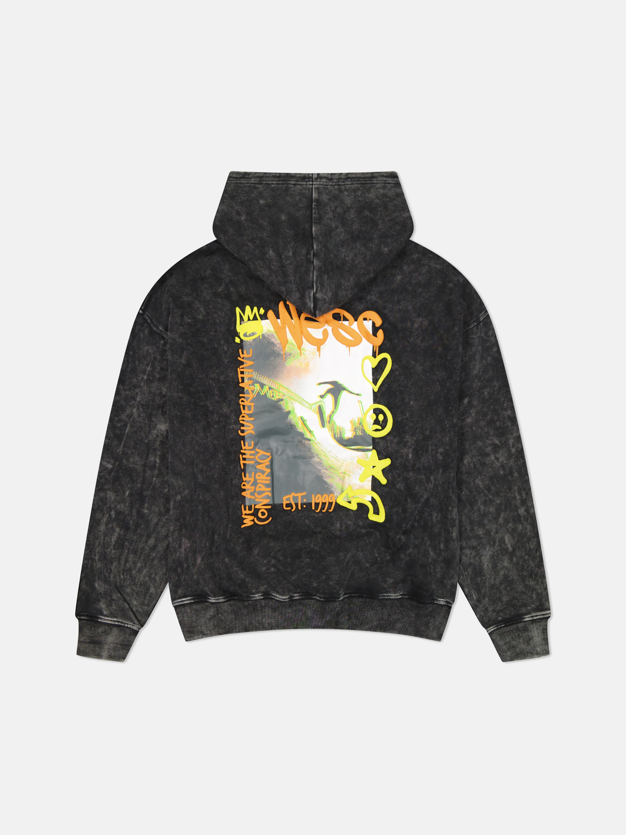 Designed for a laid-back, effortless look, the Dropped Shoulder Hoodie – Enzyme Wash Skater Glitch combines comfort and edgy style. The enzyme-washed fabric gives it a worn-in, vintage feel, while the bold front and back graphic print adds a striking, skater-inspired aesthetic. Featuring a relaxed dropped shoulder fit, this hoodie is perfect for layering or wearing solo. Finished with ribbed cuffs and hem for a structured shape, a kangaroo pocket for convenience, and the signature WeSC exterior label for an authentic touch.